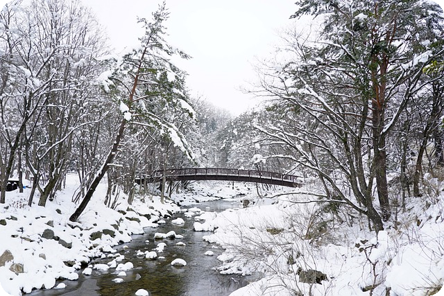 | 계곡 | 맑은 물과 눈이 함께 어우러져 화려한 경치를 만들어냄. |